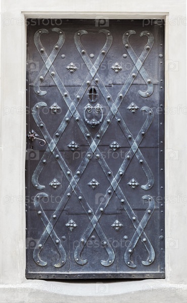 Старый богато украшенный фон металлической двери