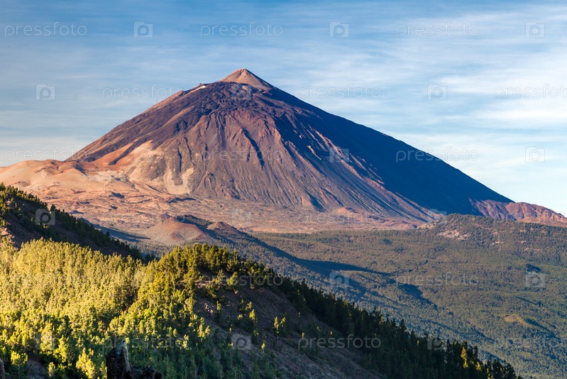 Вулкан Тейде на острове Тенерифе, Испания, на фоне голубого неба