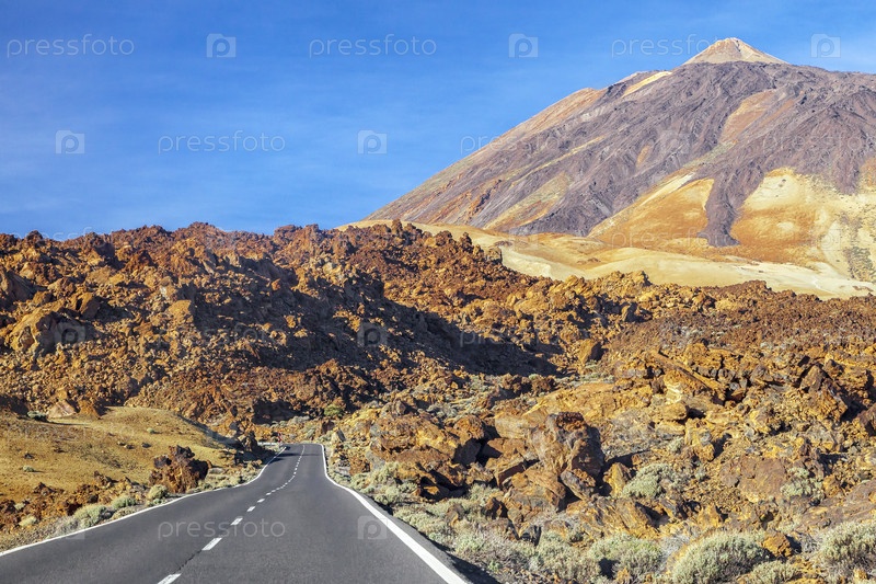 Вулкан Тейде на острове Тенерифе, Испания, на фоне голубого неба