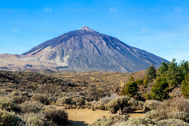 Вулкан Тейде на острове Тенерифе, Испания, на фоне голубого неба