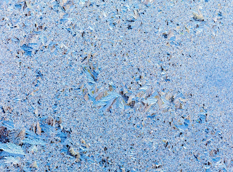 Мороз на окне зимой, синеватый оттенок