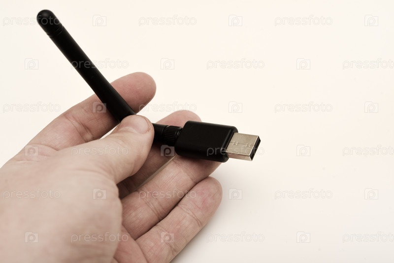 Wi-Fi маршрутизатор в руке на белом фоне. USB Bluetooth адаптер для ПК
