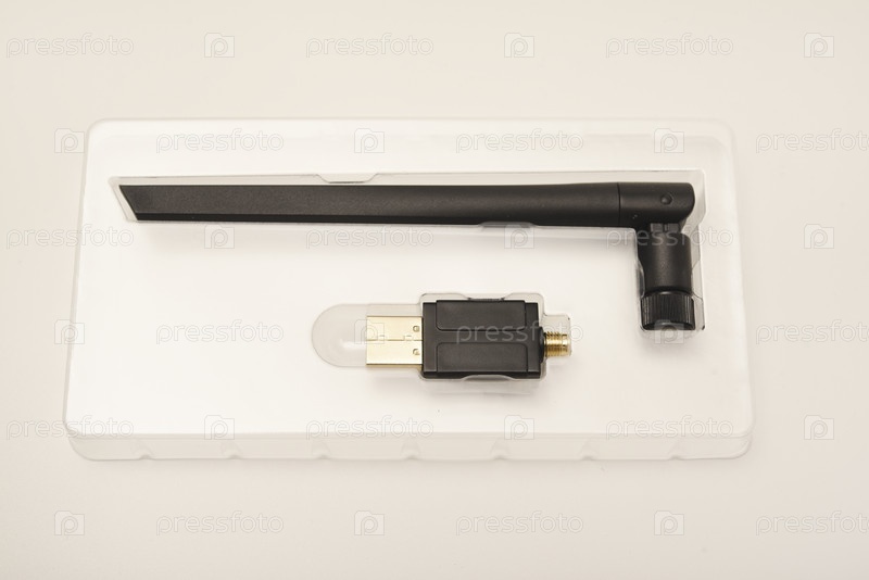 Wi-Fi маршрутизатор на белом фоне. USB Bluetooth адаптер для ПК