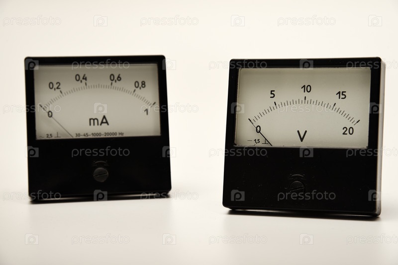 Вольтметр и амперметр на белом фоне. Средства измерения электрического тока и напряжения