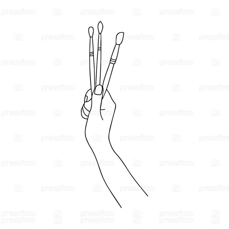 Рука держит художественные кисти, контурная иллюстрация. Редактируемый штрих. Векторная иллюстрация к международному дню художника. Вектор