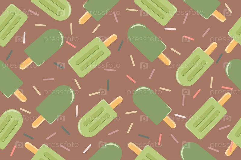 Бесшовный узор мороженого матча на модном фоне цвета мокко мусс 2025. Векторная иллюстрация