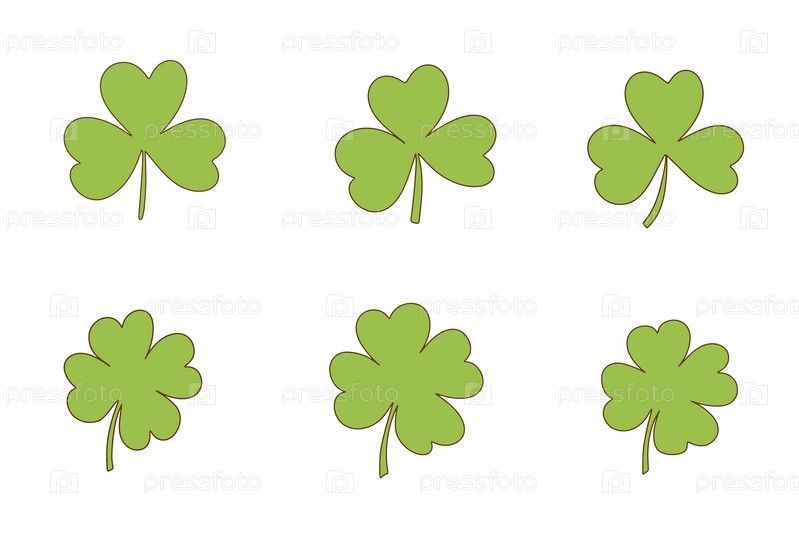 Формы клевера. Набор иконок клевера. Иконки трилистника, четырехлистный клевер. Векторная иллюстрация