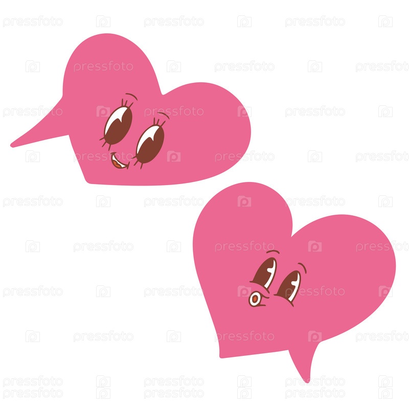 Милые розовые речевые пузыри в форме кавайных сердец. Речь, пузырь, диалоговые окна, уведомление чата на белом фоне. Векторная иллюстрация