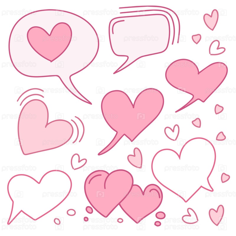 Дизайн речевых пузырей в форме сердца для веб-сайта, баннера, плаката, поздравительной открытки. Розовые иконки чата. Вектор