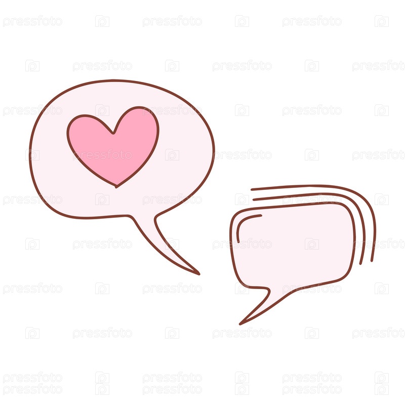 Речь, пузырь, диалоговые окна в стиле каракули. Уведомления чата с сердцем, изолированным на белом фоне. Концепция любви. Векторная иллюстрация