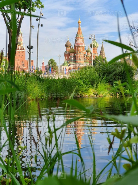 Вид на храм Василия Блаженного с озера