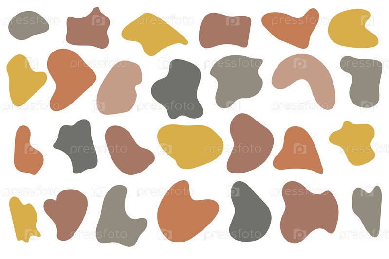 Неправильная капля, набор абстрактных органических форм. Абстрактные нерегулярные случайные капли. Простое жидкое аморфное пятно, органический узор формы пятна. Модные минималистичные дизайны для презентаций, баннеров, плакатов и листовок. Векторная иллюс