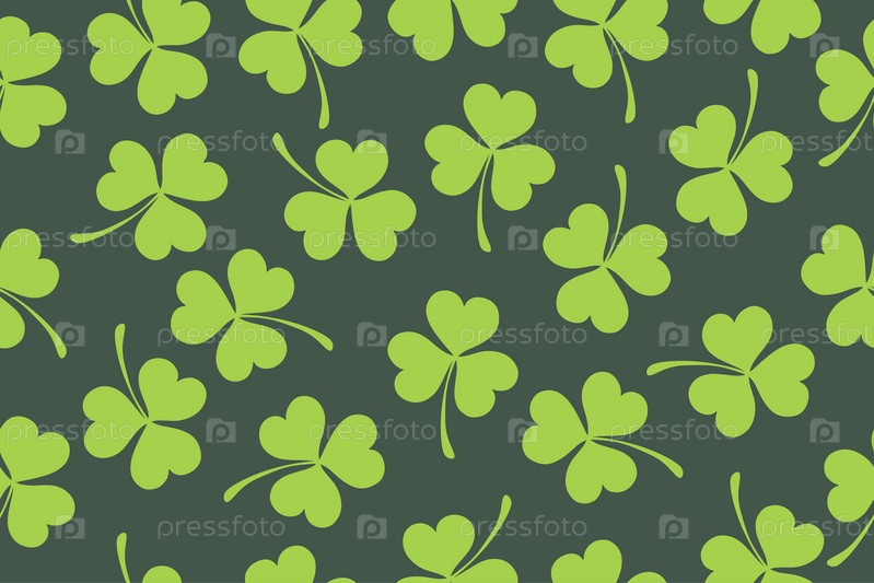 Бесшовный узор из листьев клевера на День Святого Патрика. Листья клевера на зеленом фоне. Подходит для оберточной бумаги, обоев, фона, открытки и украшения. Вектор