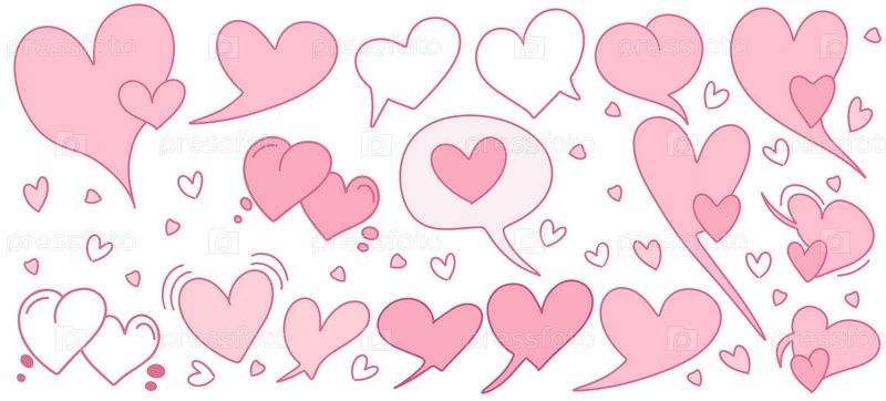 Набор значков сердечно-образных сообщений в стиле doodle. Речевые пузыри с розовым сердцем. Концепция социальных сетей или уведомлений. Дизайн речевых пузырей в форме сердца для веб-сайта, сайта, баннера, плаката, поздравительной открытки