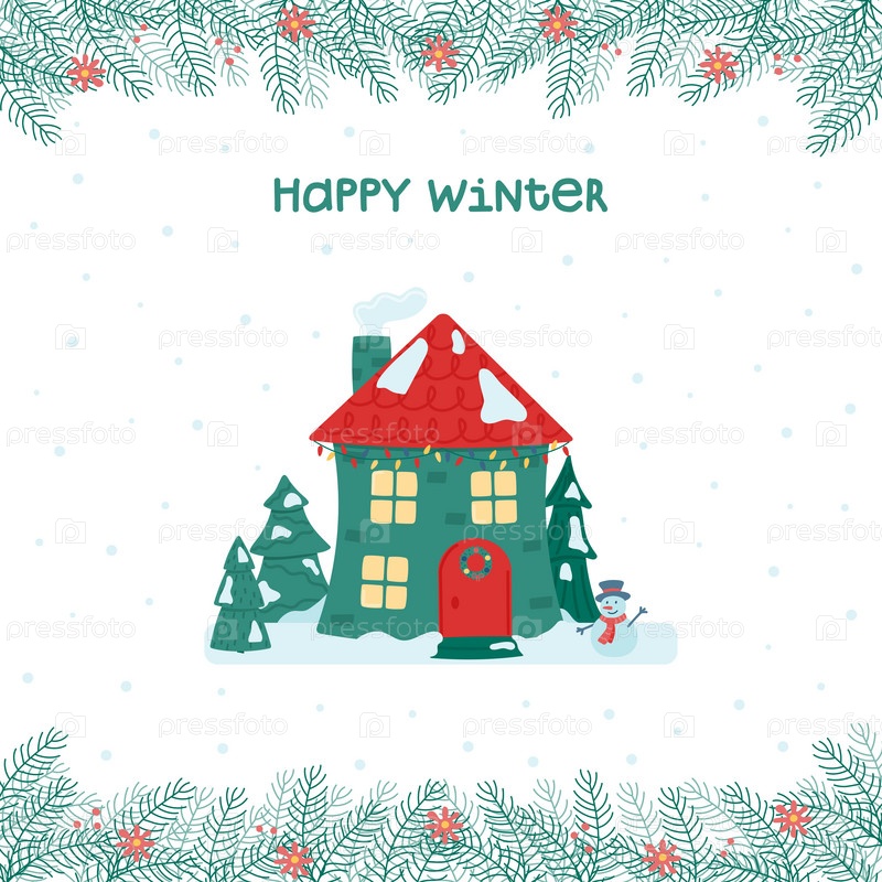 Счастливой зимы. Милое Рождество и зимний дом. Украшенный дом