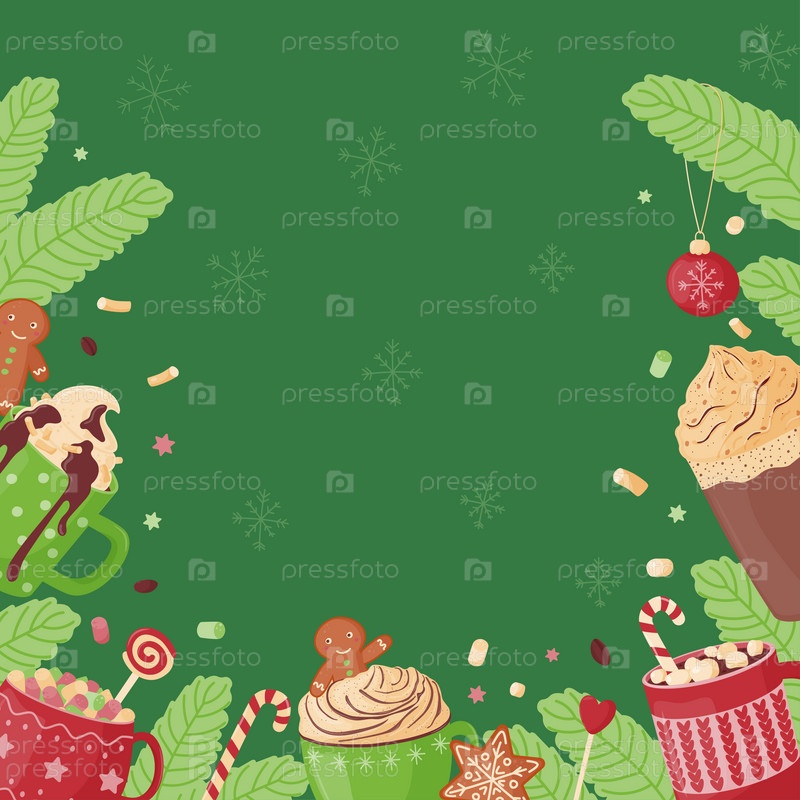 Рождественская рамка из горячих напитков, сладостей, пряников