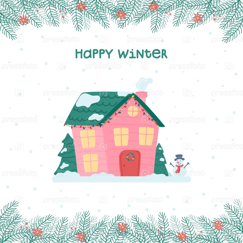 Счастливой зимы. Милое Рождество и зимний домик