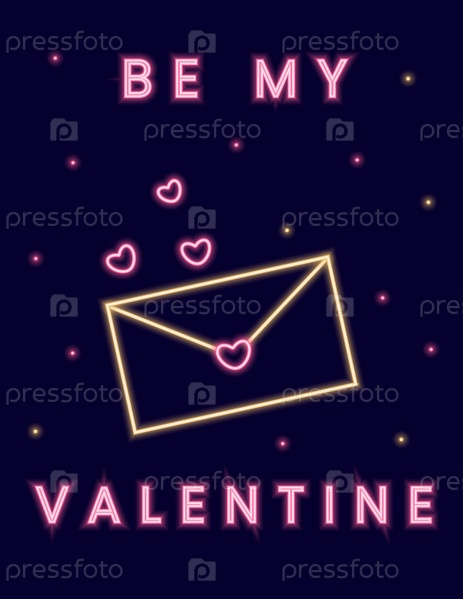 Неоновая иллюстрация с конвертом, сердечками и надписью «Будь моим Валентином»