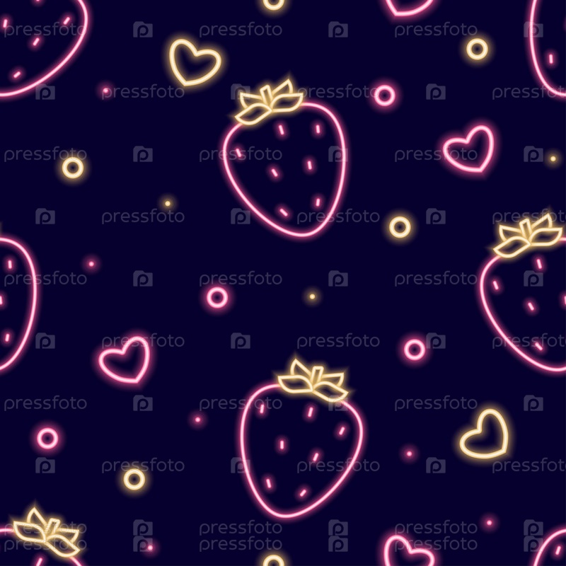Неоновый бесшовный узор с романтическими иконками на тему Дня святого Валентина
