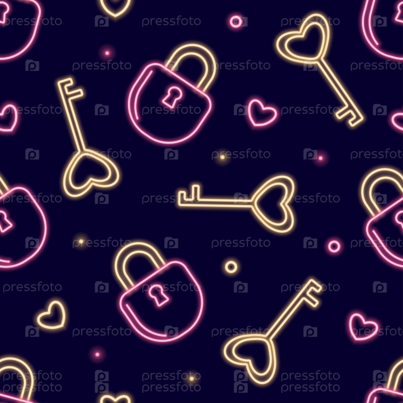 Неоновый бесшовный узор с романтическими иконками на тему Дня святого Валентина