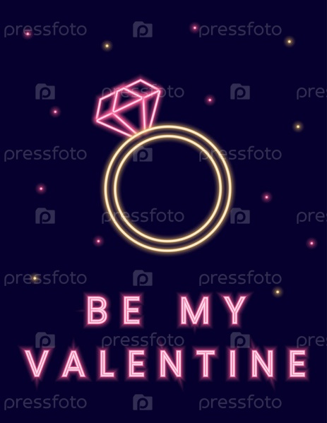 Неоновая иллюстрация с кольцом, сердцами и надписью 'Будь моим Валентином'