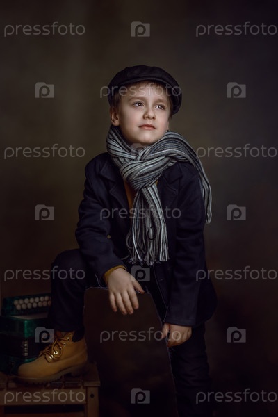 Портрет красивого мальчика в стиле ретро. Творческая, сказочная обработка фотографий. Концепция обложки книги
