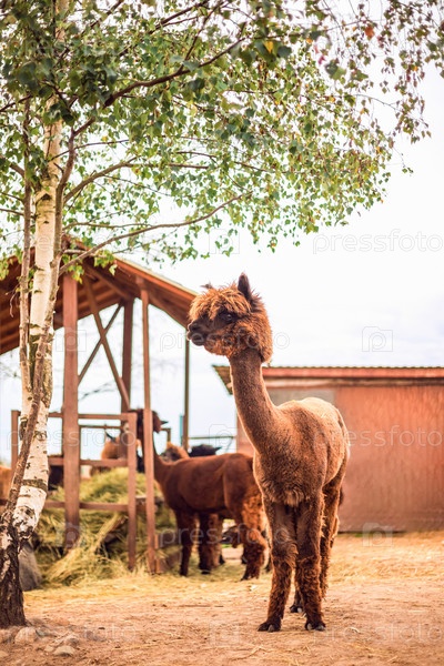 Портрет альпаки крупным планом. Альпака в загоне