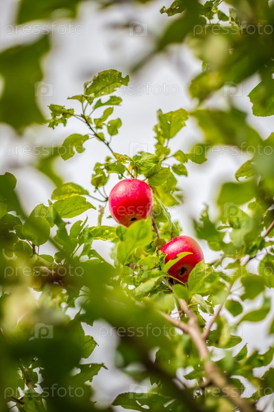 Спелые яблоки на ветке яблони. Концепция сада и фруктовых деревьев