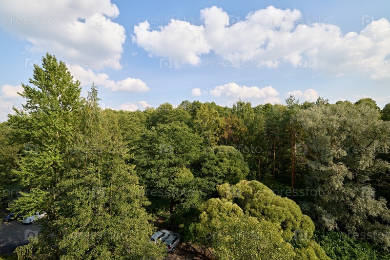 Полюбуйтесь пышным зеленым лесом под облачным небом и насладитесь умиротворяющим пейзажем вокруг вас