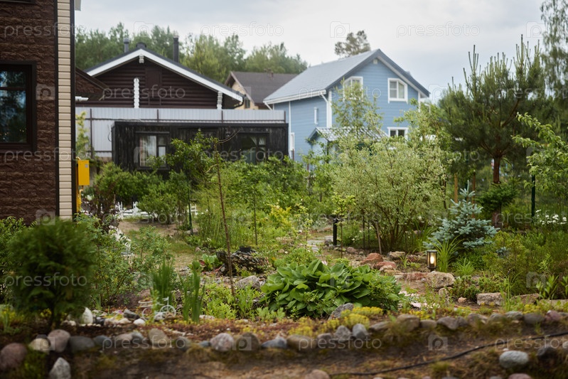 В Очаровательном саду расположены очаровательные дома, расположенные среди яркой зелени