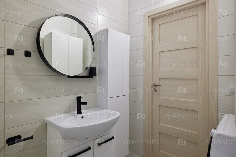 Современный дизайн ванной комнаты со стильной сантехникой и нейтральными тонами, которые улучшают эстетику