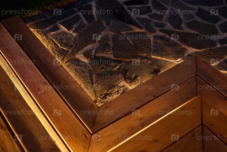 Элегантный деревянный уголок может похвастаться красивыми каменными деталями и уютной атмосферой мягкого освещения