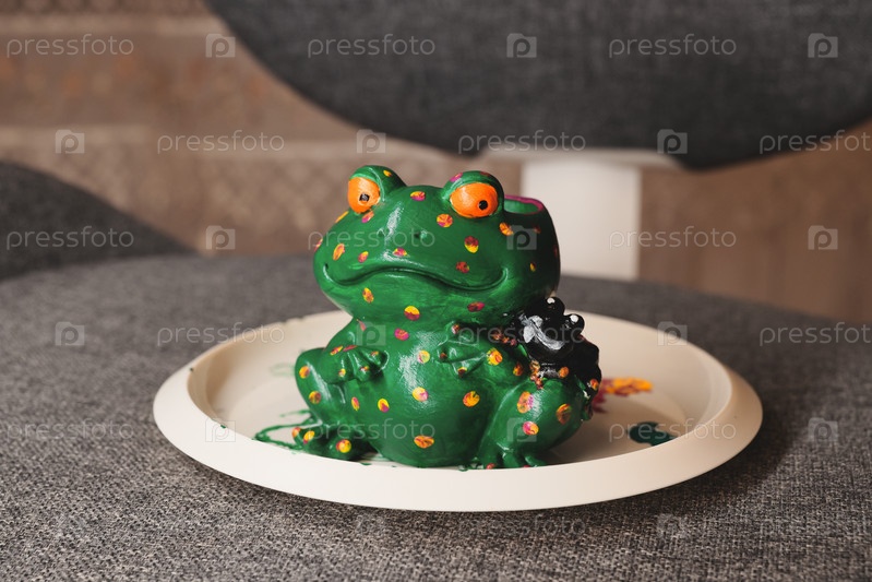 Причудливая и красочная фигурка зеленой лягушки со сложными художественными деталями и дизайном