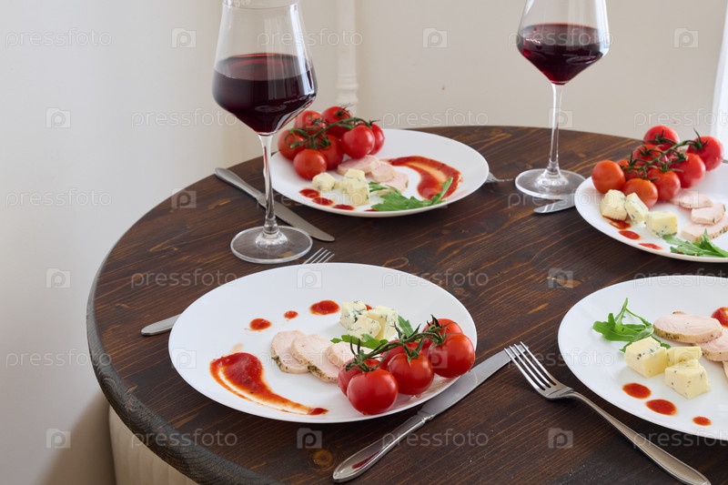 Элегантная и изысканная сервировка стола с вином и свежими, вкусными ингредиентами