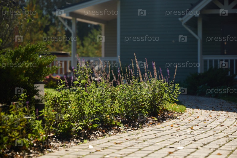 Очаровательная и привлекательная садовая дорожка, которая изящно ведет к уютному и гостеприимному дому