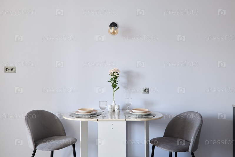 Современный обеденный стол в стиле минимализма с очаровательным цветочным декором в центре