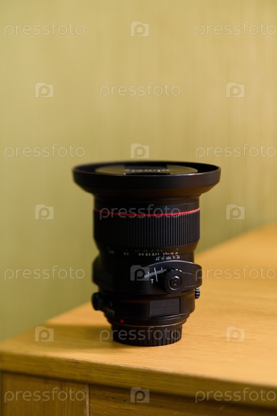 Высококачественный и профессиональный объектив камеры прекрасно представлен на великолепной деревянной поверхности