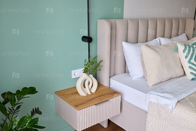 Откройте для себя современный декор спальни с пышными зелеными стенами, дополненными уютными и привлекательными акцентами