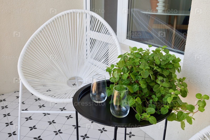 Откройте для себя очаровательную зону отдыха на открытом воздухе, украшенную красивыми растениями и элегантной стеклянной посудой