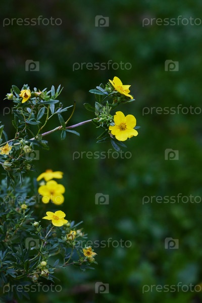Яркие желтые полевые цветы красиво выделяются на сочном зеленом фоне