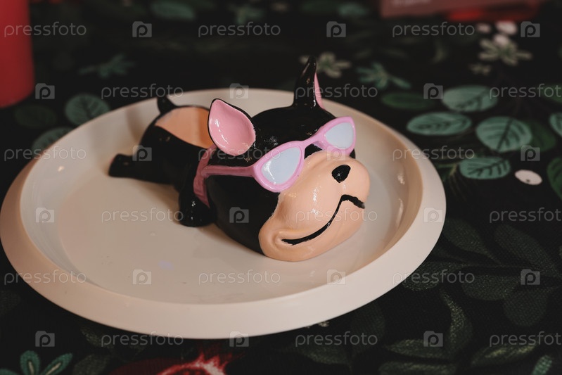 Эта игривая фигурка коровы в солнцезащитных очках очаровательно размещена на декоративной тарелке