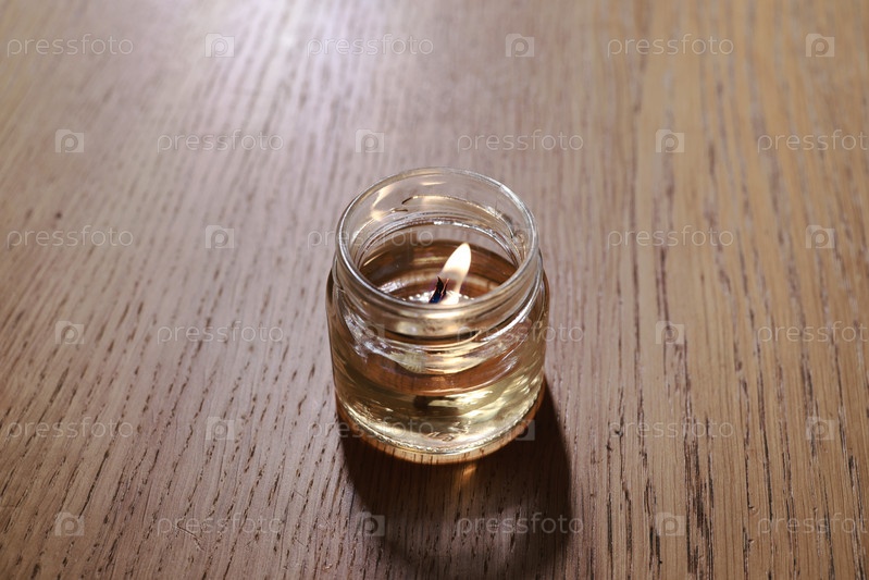 Успокаивающая свеча, элегантно помещенная в стеклянную банку, стоящую на красивой деревянной поверхности