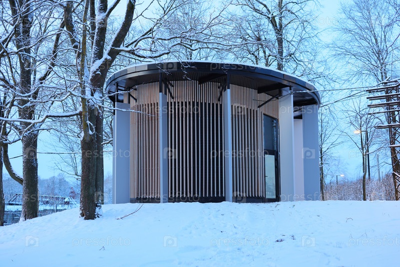 Современная архитектура на фоне прекрасного снежного зимнего пейзажа, эстетичная и уникальная