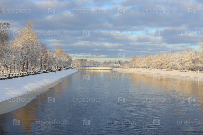 Безмятежный зимний пейзаж с заснеженной рекой, вызывающий ощущение спокойствия и красоты