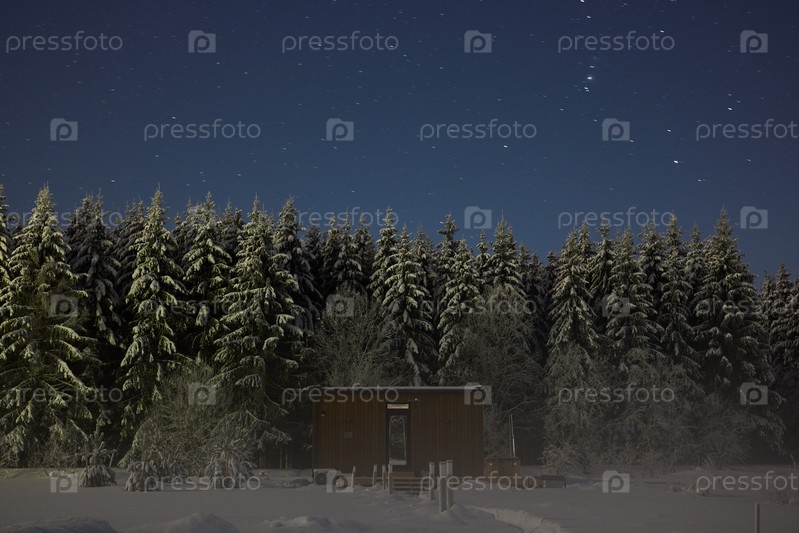 Тихая зимняя ночь, наполненная прекрасным заснеженным пейзажем зачарованного леса
