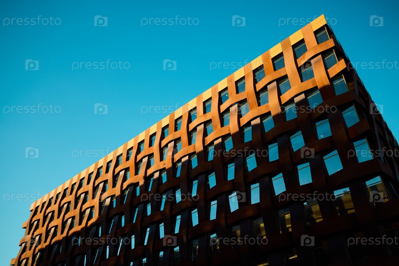 Архитектурный фасад выделяется на фоне ясного голубого неба, воплощая элегантность и креативность