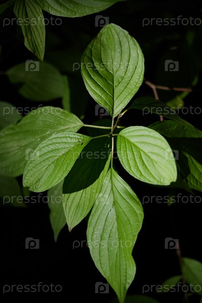 Яркие зеленые листья создают потрясающий визуальный контраст на темном фоне