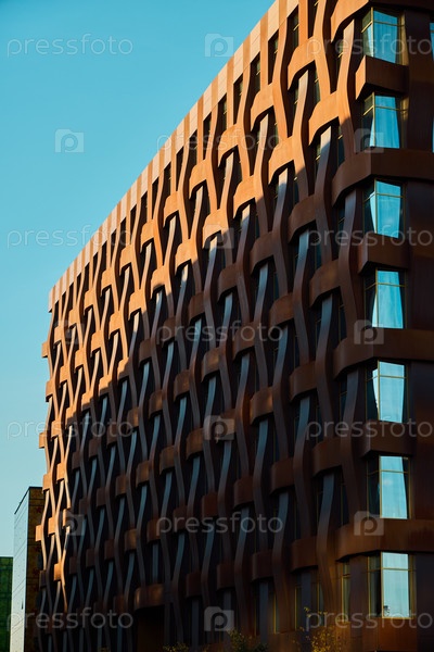 Современный архитектурный дизайн с уникальным рисунком фасада, улучшающий эстетику и городской пейзаж