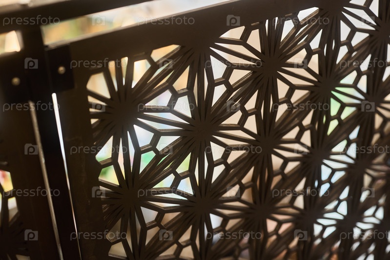 Декоративный металлический экран со сложным узором, который красиво отражает свет