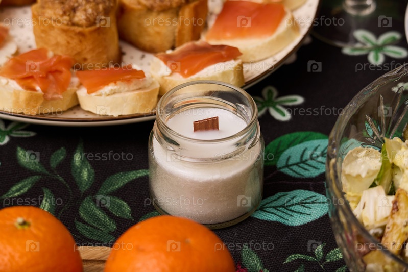 Элегантная и очаровательная сцена обеда с пикантными блюдами и свежими фруктами
